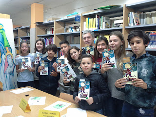 Despois da degustación literaria que tivemos o pasado luns e cun sabor aínda doce na boca, hoxe tivemos na biblioteca a primeira sesión do club de lectura de 4º de ESO; conxuntamente con Carme Mouriño que vai ser a coordinadora deste grupo, presentamos o club para os novo membros, repartimos contratos lectores, marcapáxinas e a nova lectura que nos vai acompañar neste trimestre: